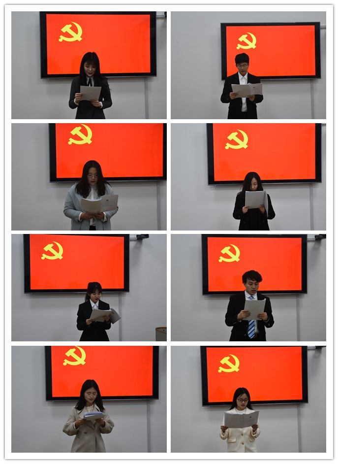 八名发展对象段卓越、姚志良、李莹、白金川、宋娜、朱政鑫、韩艳红、李祉炜先后宣读了入党志愿书。随后,八名发展对象的入党介绍人依次发表意见。紧接着,研究生党支部纪检委员赵璐同志代表支委会向大会汇报段卓越、李莹等八人的教育审查情况。