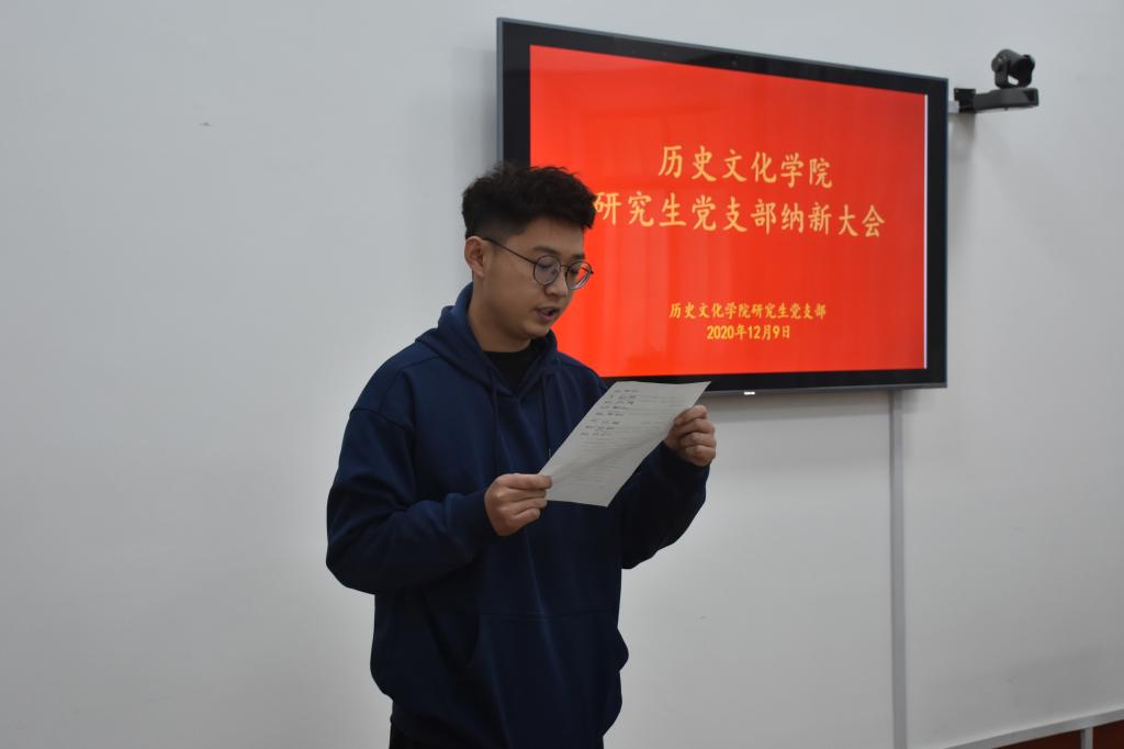 12月9日下午,快猫视频 研究生党支部预备党员纳新大会在文史楼505会议室召开,支部党员与入党积极分子参加此次大会。大会在雄壮的国际歌声中拉开帷幕。