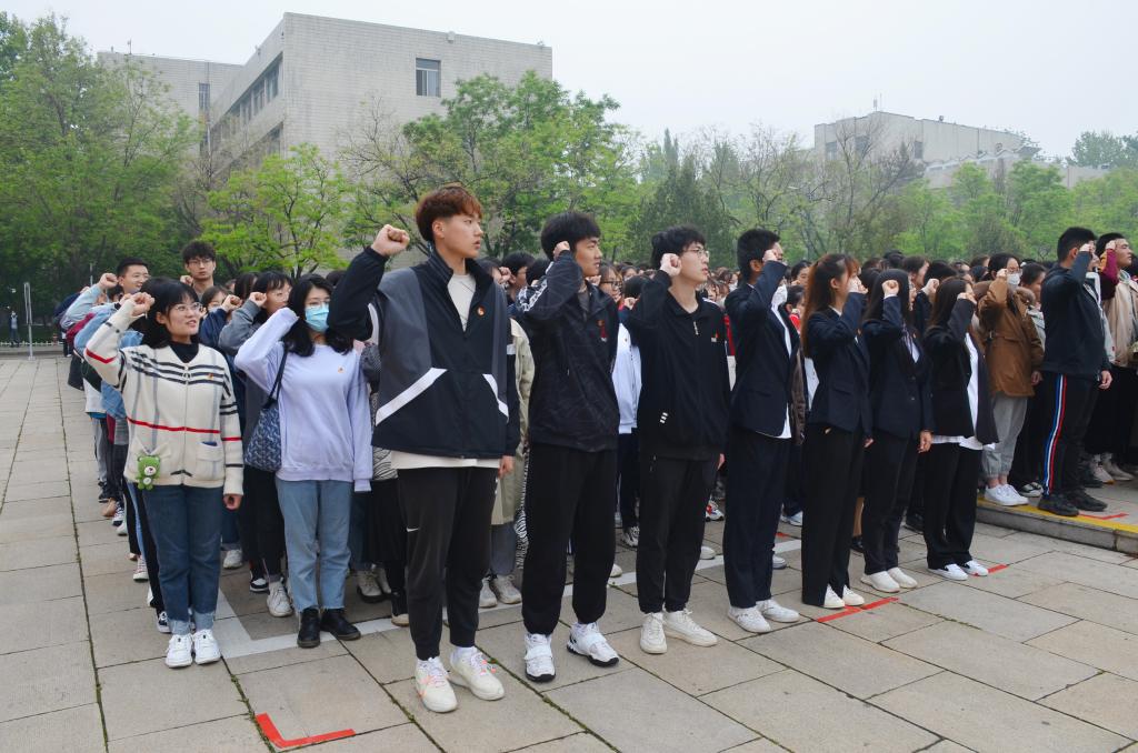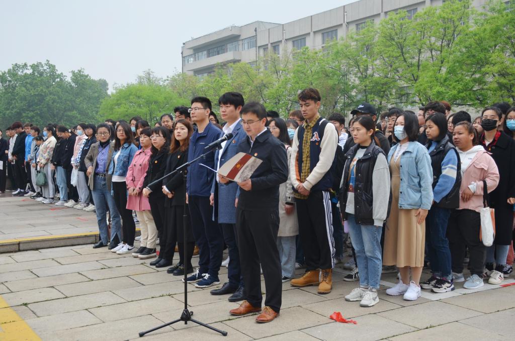 为热烈庆祝中国共产党成立100周年,我校于4月27日在孔子文化广场举办“青春心向党”国旗下的承诺主题活动。快猫视频 2020级全体研究生团员佩戴团徽,参加了宣誓活动。