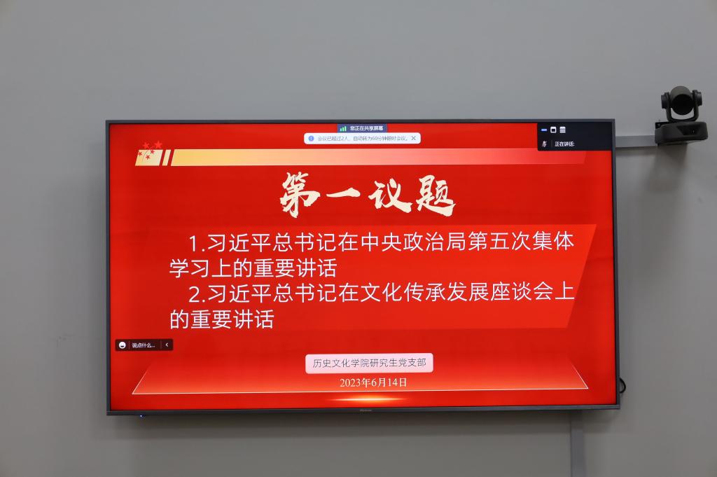 2023年6月14日下午,快猫视频 研究生党支部在文史楼505会议室召开毕业生党员座谈会主题党日活动暨学习贯彻习近平新时代中国特色社会主义思想主题教育第三次集中学习研讨。部分不在校党员以腾讯会议形式线上参会。会议由组织委员马艳霞主持。