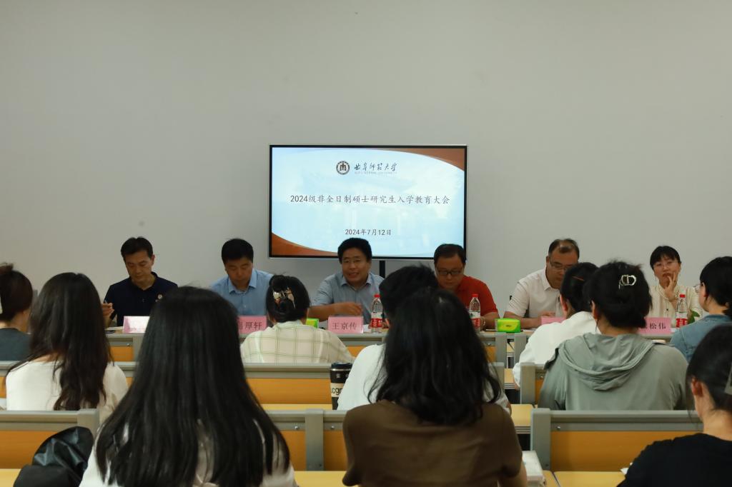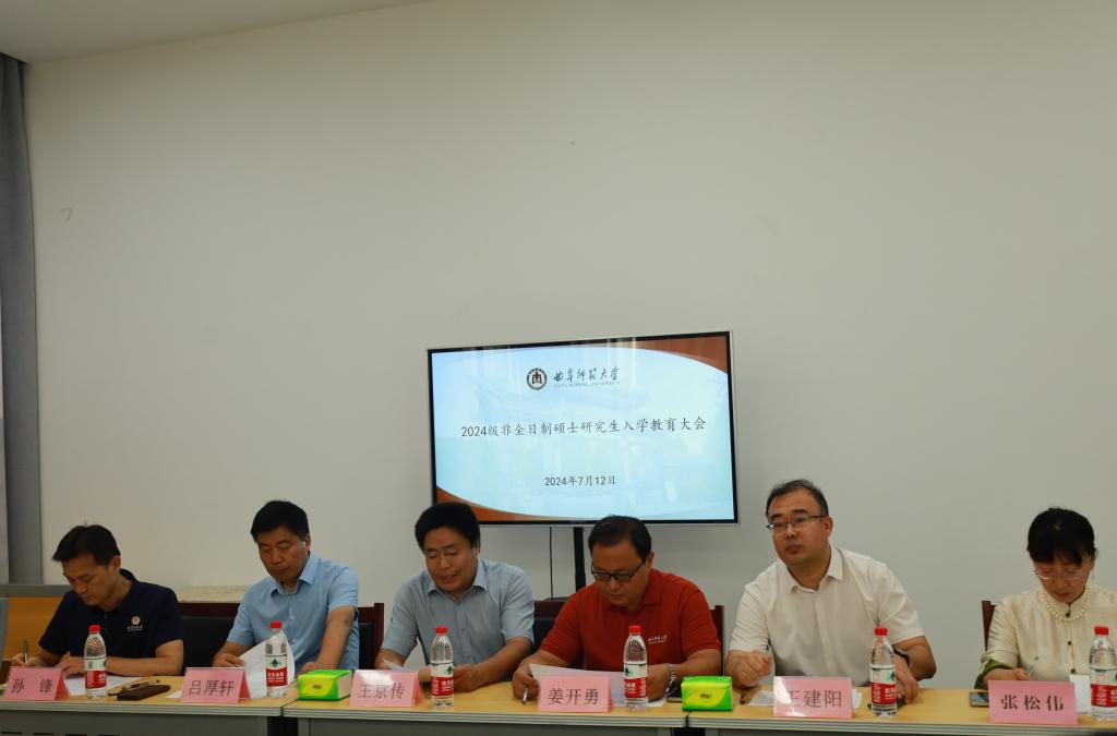7月12日下午,快猫视频 在孔子书院B106教室召开2024级非全日制硕士研究生入学教育大会。学院党委书记姜开勇出席大会并讲话,党委副书记王建阳、副院长王京传、副院长吕厚轩、研究生教学秘书张松伟、研究生辅导员孙锋、2024级非全日制研究生(含全日制农村硕师)参加了本次会议。会议由研究生辅导员孙锋主持。