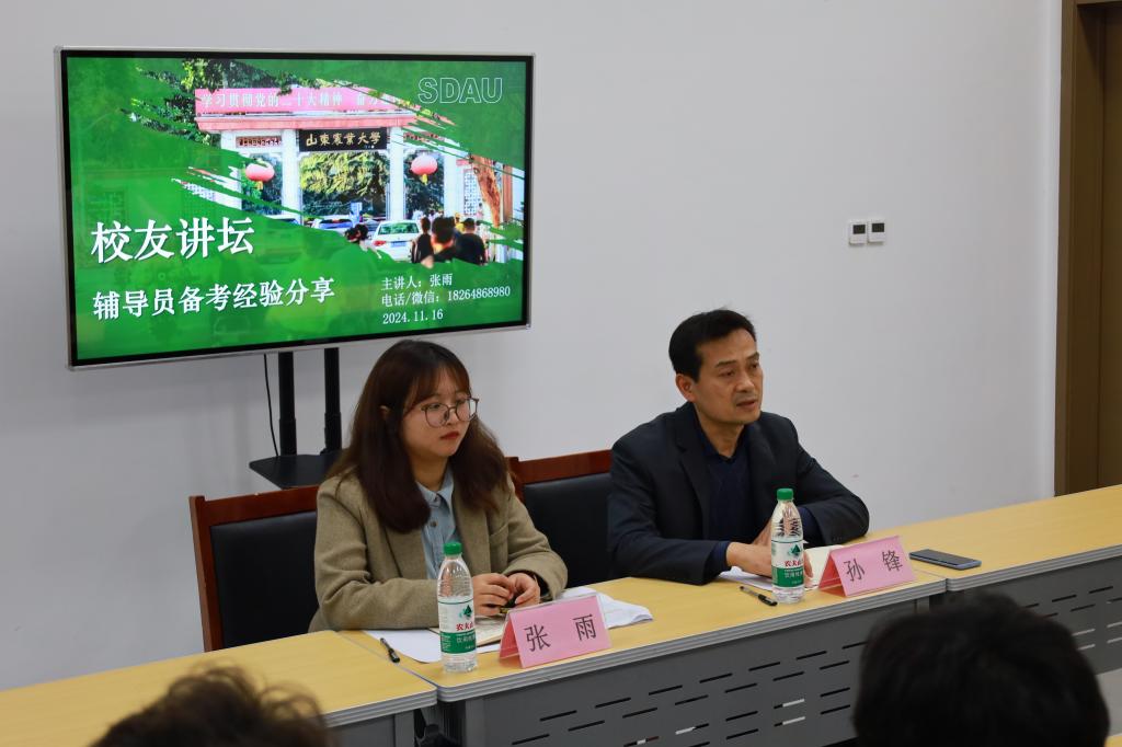 2024年11月16日下午快猫视频 在孔子书院B106教室举办“校友讲坛——高校辅导员备考经验分享会”。本次活动是快猫视频 明德敏行工作室高校辅导员备考训练营首期活动,特邀快猫视频 2024届优秀毕业研究生、山东农业大学辅导员张雨担任主讲嘉宾。快猫视频 拟报考高校辅导员同学及部分学生干部50余人参加了本次活动,学院研究生辅导员孙锋出席并主持本次活动