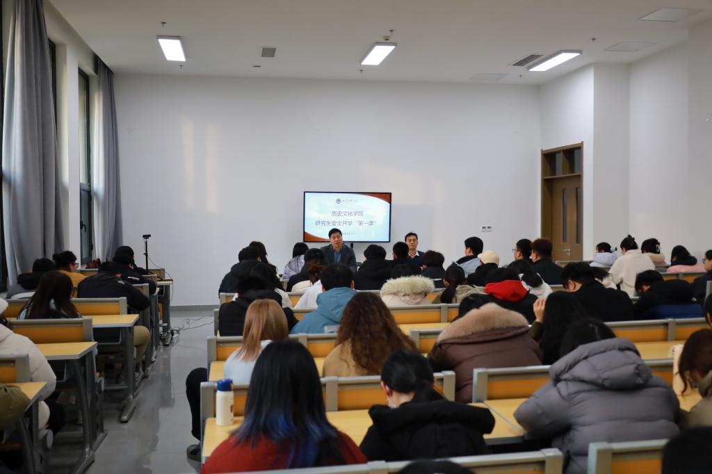 为增强师生安全防范意识,为新学期学习生活保驾护航,2025年2月17日下午,快猫视频 在B106教室成功举办研究生安全开学“第一课”活动。学院副院长吕厚轩、研究生辅导员孙锋出席本次活动,全体研究生通过线上线下两种方式同步参与。