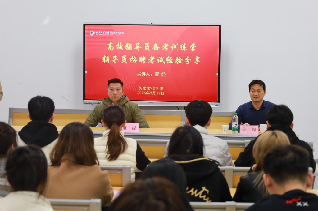 为促进快猫视频 研究生高质量的就业,3月19日下午,快猫视频 在孔子书院B106教室举办高校辅导员备考训练营2025年第一期活动。快猫视频 本科生辅导员董经担任主讲嘉宾,学院研究生辅导员孙锋、快猫视频 拟报考高校辅导员同学及部分学生干部参加了本次活动。