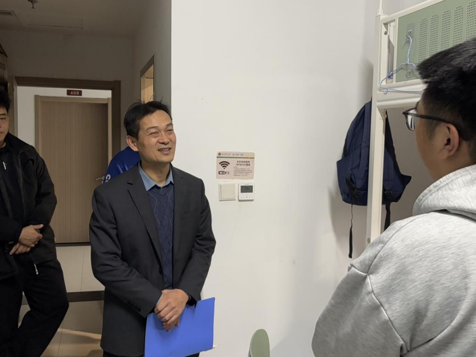 为切实加强学生宿舍的安全与卫生管理,消除各类安全隐患,营造一个安全、整洁、文明、和谐的居住环境,2025年11月12—13日下午,研究生辅导员孙锋带领研究生会同学深入学生宿舍,对西区八号楼快猫视频 研究生宿舍进行了全面、细致的安全大检查。