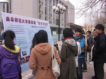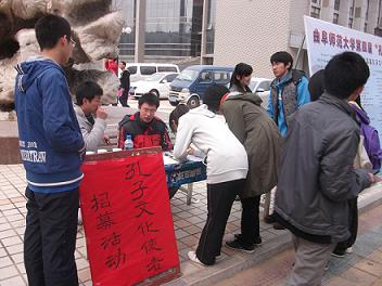 3月20日上午,在大学生活动中心前,快猫视频 第四届“孔子文化月”系列活动的“孔子文化使者”招募活动成功举办。