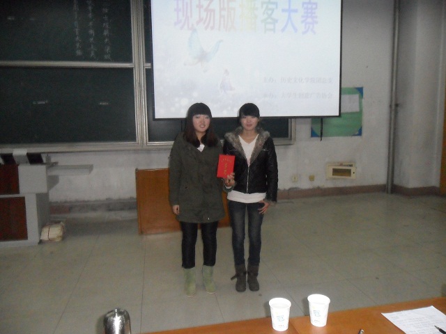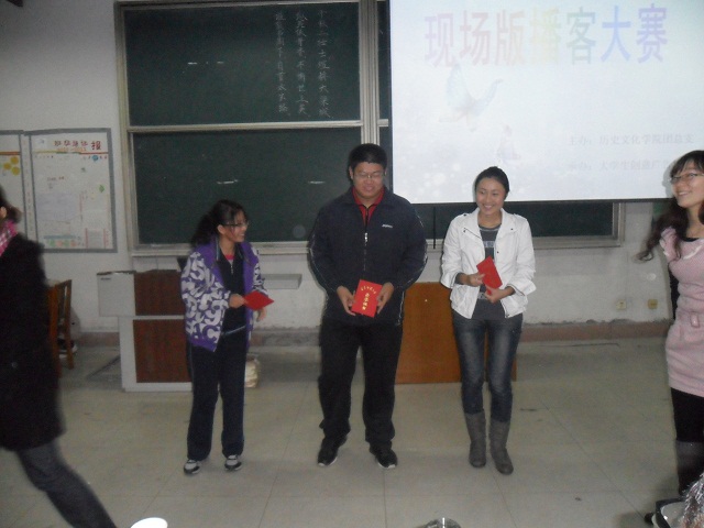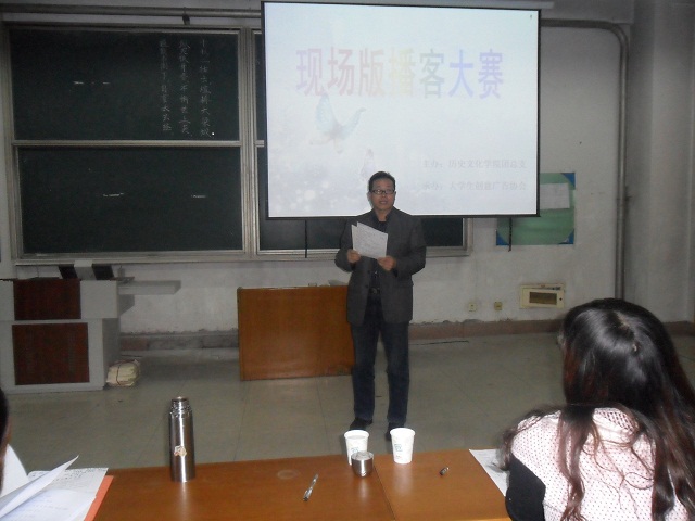 11月12日下午,由大学生创意广告协会举办的第二届现场版播客大赛决赛在综合楼103室成功举行。快猫视频 韩锋老师、学校社联副主席孙长江、院学生会副主席魏星、秘书长王倩倩及文艺部部长郑雅静出席了本次比赛并担任评委。