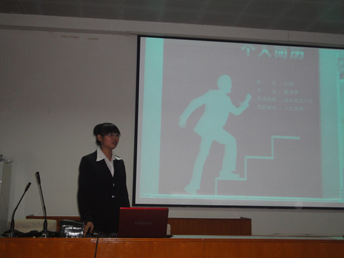 比赛开始后,选手们依次上台展示自己的简历,并且在此过程中做自我介绍。他们向大家清晰地展示了自己的基本信息以及应聘职位,并根据所学的专业理论以及业余特长,在简历上充分的展示自己优势。随后是选手接受评委老师的提问,评委老师根据选手们展示的简历内容、应聘工作,对于工作中将会发生的问题,对他们进行提问。最后,评委老师们从简历设计、问题回答两个方面对本次比赛做出了点评。