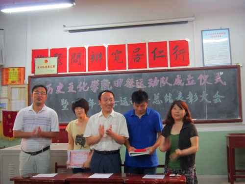 6月6日下午,快猫视频 田径队成立仪式暨2012年春季运动会总结表彰大会在文史楼309教室成功举行。快猫视频 党总支副书记王明科、团总支书记王建阳、辅导员老师李春玲、2011届学生会主席团成员及参加2012年春季运动会的教练员、运动员共同出席了本次大会。
