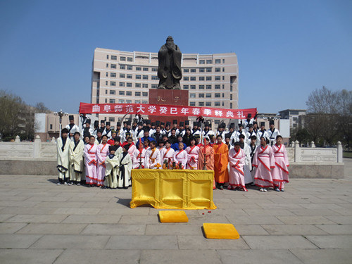 4月7日上午,由洙泗学社承办的传统礼仪研修之释典礼暨癸巳年春季祭孔在孔子文化广场如期举行。参加此次活动的有曲阜国学院部分师生,孔子文化使者及各院系同学。