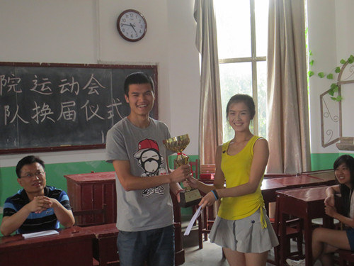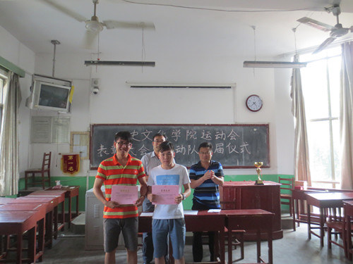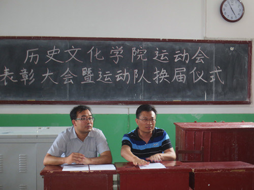 6月14日下午,快猫视频 2013年运动会表彰大会暨运动队换届仪式在文史楼309室举行,出席本次大会的有快猫视频 党总支副书记王慕东、团总支书记王建阳,以及2013年运动会的教练员及运动员等。大会由王建阳主持。