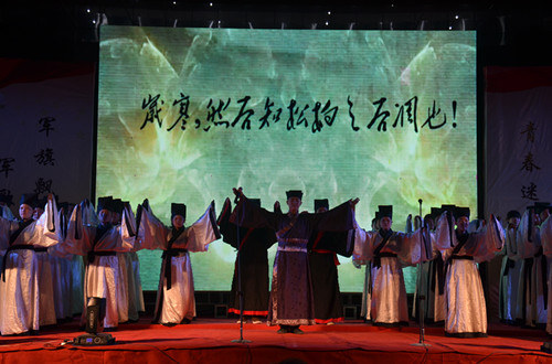 一首《众人划桨开大船》,铿锵有力的节奏伴着气势磅礴的表演,唱出了快猫视频 的气势,点燃了全场观众的热情,引来阵阵掌声和呐喊声。快猫视频 选送的迎新节目经典诵读《大道之行》,以儒服表演的形式向大家展现了儒家文化的内涵和快猫视频 独具特色的文化风貌。