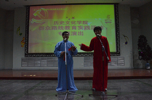11月12日,快猫视频 群众路线教育实践活动专题演出在新大学生活动中心401室举办。快猫视频 全体党员和入党积极分子观看了此次专题演出。