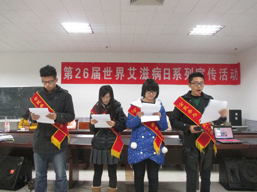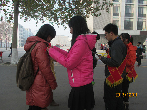 此次系列宣传活动主要包括艾滋病宣传启动仪式、艾滋病知识竞赛、“世界艾滋病日”校内外宣传三部分。在知识竞赛过程中,参赛选手们表现突出,赢得了评委的一致好评。在校内外宣传活动中,史苑学社与曲阜市疾病防控中心、济宁学院海浪文化社共同合作进行宣传。志愿者们为来往师生佩戴红丝带,发放关于艾滋病预防常识的宣传册,请路人在宣传板上签名、送祝福,并有自行车队环曲阜绿色行道向路人宣传。