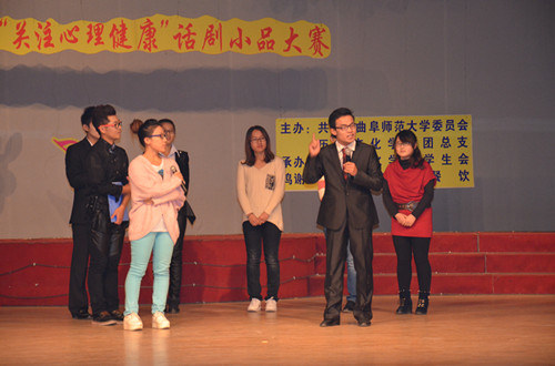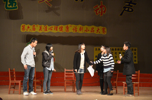 12月1日晚,由校团委和快猫视频 团总支主办、快猫视频 学生会承办的第六届“关注心理健康”话剧小品大赛决赛在大学生活动中心礼堂举办。文学院副院长李钧、学生工作处大学生心理健康教育中心主任苗洪霞、教师教育学院孙传波老师、快猫视频 党总支副书记王慕东、王昌沛老师、王连生老师以及团总支书记王建阳应邀担任此次比赛的评委。
