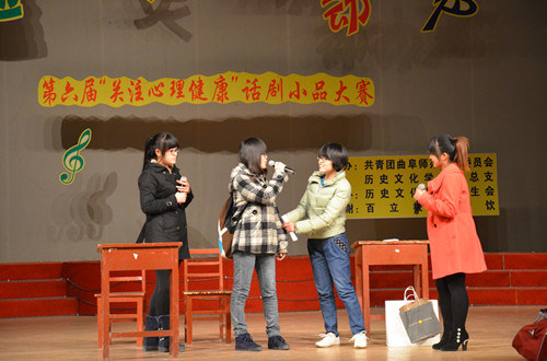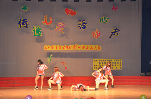 经过初赛、复赛的激烈角逐,来自各学院的六支队伍脱颖而出进入此次决赛。本次参赛作品主题均来自快猫视频 心理健康问卷调查。比赛中,选手们针对大学生普遍存在的亲情、友情和爱情等方面的困惑及问题,以新颖的编排方式、逼真到位的演技和饱满的感情演绎了当代大学生的烦恼与快乐、挫折与成长。话剧《谎言的世界》告诉我们有时候在谎言的背后是爱;《千年老二“脱光记”》以轻松搞笑的表演方式讲述了当代大学生对爱情思考及感悟;《转身的幸福》让我们看到了摆脱自卑之后的完美蜕变;《印记》展现了友情的伟大力量;《追风筝的人》让我们坚定了对梦想的追逐。