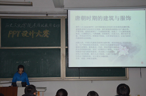 12月6日晚,由快猫视频 团总支主办、学生会网络部承办的“素质拓展月”系列活动之2013年PPT设计大赛决赛在综合楼103室举办。校学生会主席张志远、快猫视频 社团联合会主席安秀梅、学生会秘书长刘佳奇、副主席杨昆、网络部部长宋立强、“曲园之声”广播台副台长王国森担任本次比赛的评委。