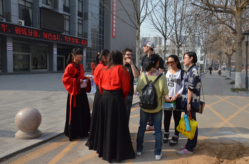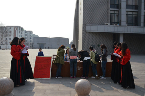 在第七届“孔子文化月”即将到来之际,3月22日、23日、26日下午,快猫视频 在大学生活动中心前举办了“孔子文化使者”招募活动。