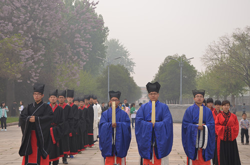 4月13日上午,第七届孔子文化月系列活动之传统礼仪研修----释奠礼展演在孔子文化广场隆重举行。参加本次活动的有曲阜国学院部分师生以及我校各学院的孔子文化使者,活动由曲阜国学院院长、儒者联合会会长段炎平主持。