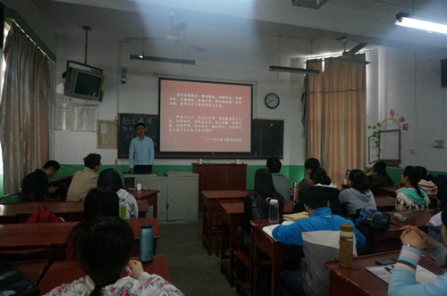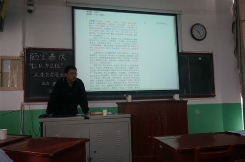4月19日上午,由快猫视频 史苑学社主办的第七届“孔子文化月”国学沙龙系列活动之“陋室春秋”在文史楼309室举办。快猫视频 张俊成和巩宝平两位老师受邀担任嘉宾并与同学们展开了学术交流。史苑学社全体成员及快猫视频 部分同学参加了论坛活动。