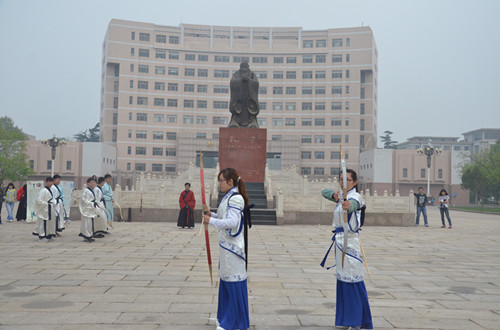 4月20日,快猫视频 洙泗学社承办的“第七届孔子文化月”传统礼仪研修系列活动之射礼在孔子文化广场举行。我校各学院的孔子文化使者参加了此次射礼。