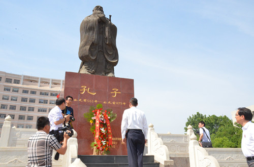 5月23日下午,山东省首家国学院在我校隆重揭牌。孔子第79代嫡长孙、中华大成至圣先师孔子协会会长、我校国学院名誉院长孔垂长先生与山东省教育厅副厅长宋承祥共同为国学院揭牌。揭牌仪式前,孔垂长先生在孔子文化广场向孔子像敬献了花篮并观看了快猫视频 的传统文化特色活动——“儒家经典诵读”。