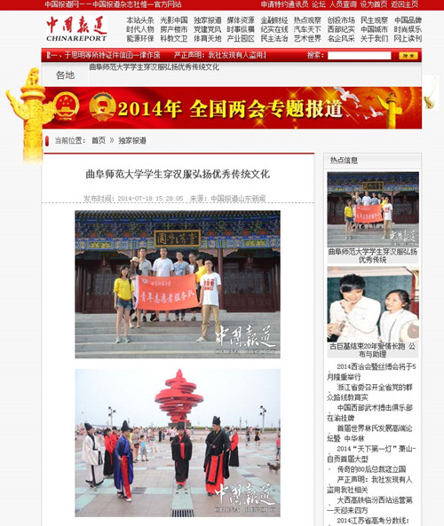 在刚刚结束的我校2014年大学生暑期“三下乡”社会实践活动中,快猫视频 的“儒家文化齐鲁行”社会实践活动和明德故事进企业进社区活动引起了校内外媒体的广泛关注。中国报道网、人民网等多家媒体对快猫视频 “儒家文化齐鲁行”社会实践活动的开展以及实践团队的情况进行了相关报道,并给予了高度评价。