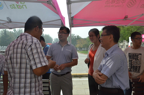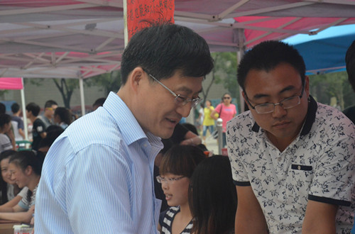 6日上午,快猫视频 院长成积春、党总支副书记王慕东、团总书记王建阳及2014级新生辅导员韩琳琳先后前往新生接待处,亲切看望了前来报到的新生,并对学院迎新工作进行了指导。
