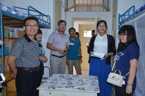 9月7日下午,快猫视频 党总支副书记王慕东、团总支书记王建阳和2014级新生辅导员韩琳琳来到14级新生宿舍,看望慰问新生。
