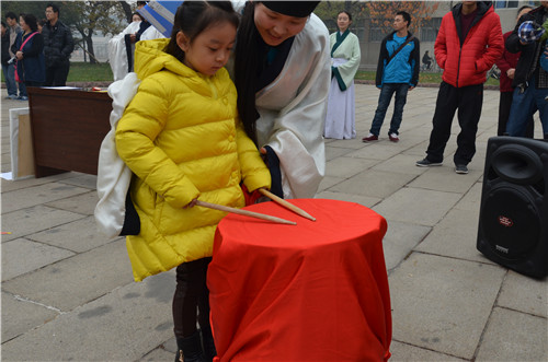 11月16日上午,由快猫视频 团总支与曲师大幼儿园联合主办,洙泗学社承办的“开笔礼”在我校孔子文化广场举行。二十余名曲师大幼儿园的学童在老师和家长的带领下体验了中国古代读书人成长过程中的首次大礼,即被称为“人生四大礼”之一的“开笔礼”。幼儿园教师代表郑晓磊、快猫视频 团总支书记王建阳、张俊成老师、部分家长代表应邀出席本次活动。