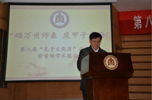 启动仪式结束后,马克思主义学院院长张立兴为大家作了题为“传承儒家文化,滋润人生出彩”的学术报告。他以诙谐幽默的语言,从“砺‘乐学’之志”、“做‘孝忠’之子”、“成‘厚德’之人”、“悟‘知人’之道”、“注视技巧”五个方面深刻诠释了如何传承儒家文化,使人生出彩。