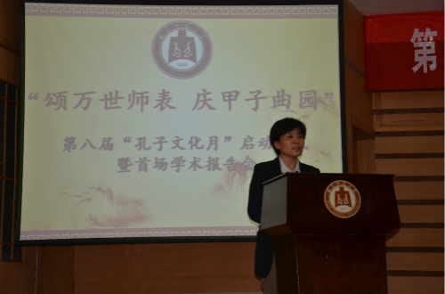 4月2日晚,我校“颂万世师表,庆甲子曲园”第八届“孔子文化月”启动仪式暨首场学术报告会在孔子会堂举行。副校长康淑敏出席仪式,并为孔子文化使者代表授旗。