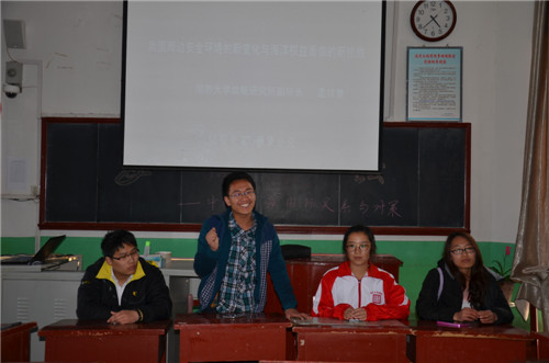 本次活动围绕着“中国沿海国际关系与对策”这一主题展开了激烈的讨论。主讲人薛青开篇点题,播放了关于中国沿海外交问题的视频,同学们就视频中提到的中日关系及中国南海问题各抒己见,从不同的视角阐述了自己的观点。讨论结束后,主讲人做了总结性的发言。(作者:张燕红 刘睿 摄影:王凤娇 田蕾)