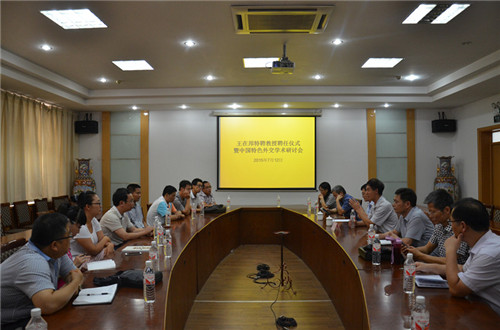副校长康淑敏教授出席会议并代表学校致辞,并向王在邦先生颁发特聘教授聘书。王在邦教授深情回忆了自己在母校的学习和工作经历,感谢母校对自己的培养和支持,并愿意为为母校的学科发展和科研创新贡献自己的力量。