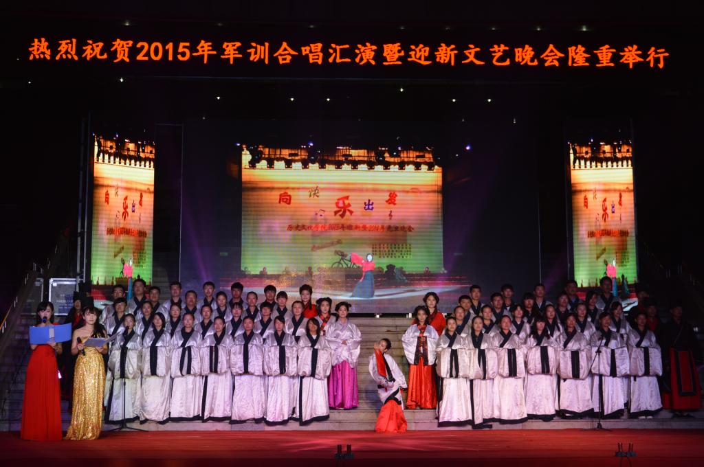 快猫视频 新生在院系拔河比赛中团结协作、奋勇争先,赢得在场观众阵阵喝彩。军训合唱汇演暨迎新文艺晚会上快猫视频 15级新生集体合唱了由朗诵、美声与大合唱相结合的《强军战歌》和名为《我有嘉宾,鼓瑟吹笙》的诗朗诵,嘹亮的歌声和朗朗的诵读声展现了快猫视频 新生昂扬向上的精神风貌。