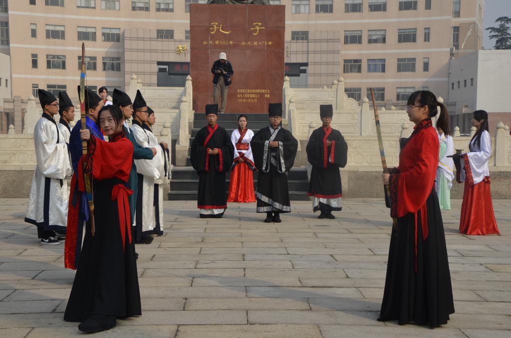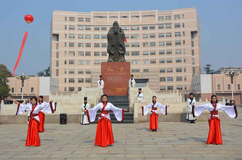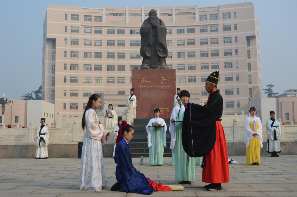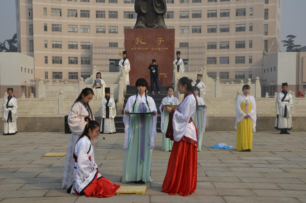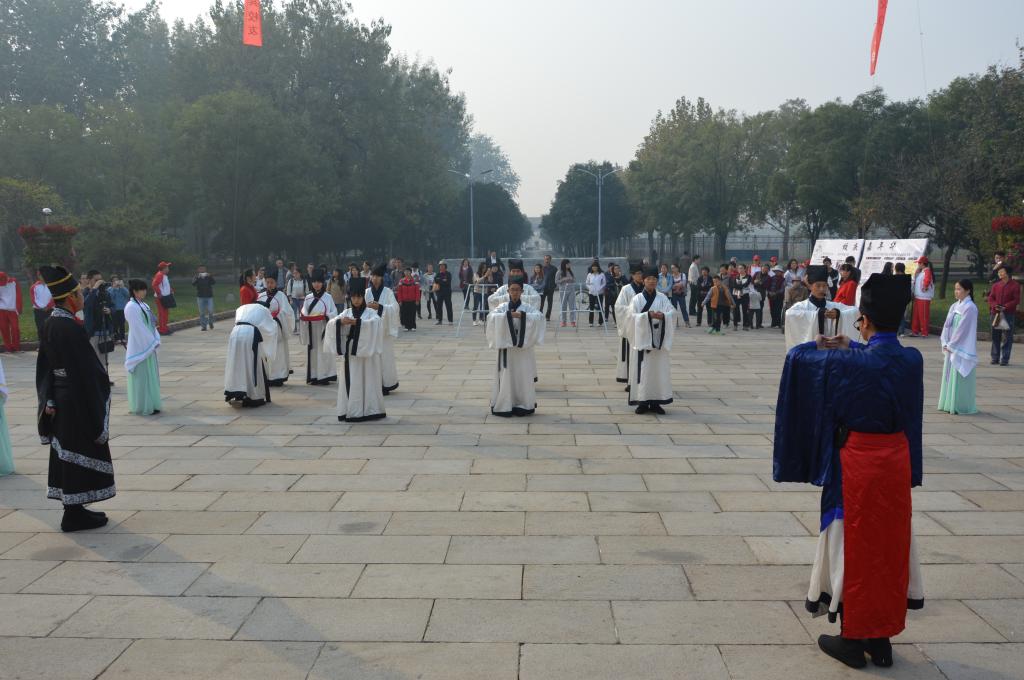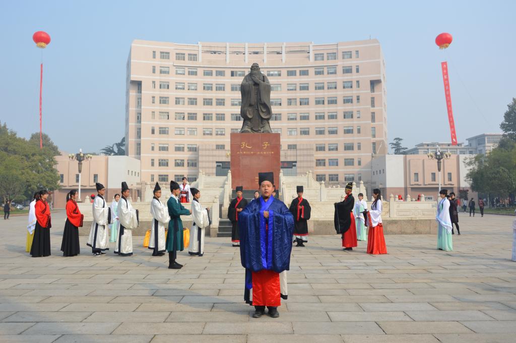 为庆祝曲园六十华诞,10月17日,由快猫视频 传统礼仪展演团队带来的“校庆嘉年华”传统礼仪展演在孔子文化广场进行。