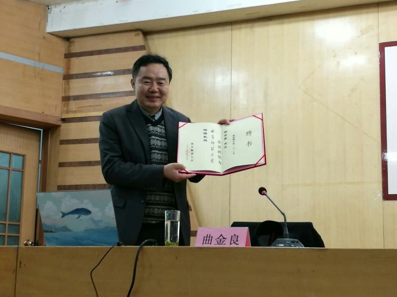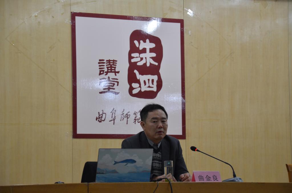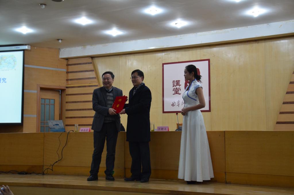12月14日晚,洙泗讲堂系列报告会在孔子会堂举行。我国著名海洋文化研究专家,中国海洋大学文学与新闻传播学院教授、博士生导师曲金良受聘为我校特聘教授并为快猫视频 师生作了题为“海洋文化遗产与海洋文化产业发展研究”的报告。报告由快猫视频 副院长李建主持。快猫视频 院长成积春出席此次报告并为曲金良颁发聘书。 曲金良以海洋污染的严峻性为切入点,从“海洋时代”、“海洋生态文明”、“中国海洋文化遗产”、“海洋文化产业发展”四个方面进行讲解,以幽默的语言,充沛的感情阐述了对海洋文化、海洋文化遗产的保护和利用。他结合地图、历史以及统计数据指出我国应重视传统海洋物质遗产的保护并提出中国海洋生态文化发展的应有战略对策。最后,曲金良对在场同学们的提问作了耐心解答并为他们签名。