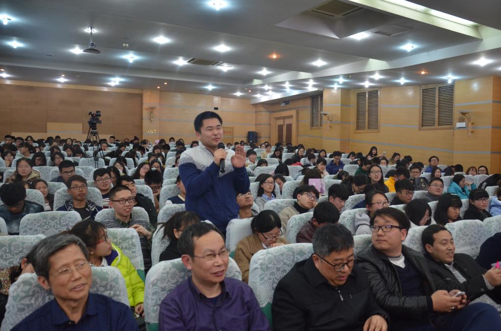 身为我校优秀毕业人士,王在邦为大家精心准备了一段曲园视频作为报告的开端。在之后的讲述环节,王在邦用幽默诙谐的语言引入“混沌”的概念,使“混沌”理论变得通俗易懂。他在“混沌”理论中探讨当前世界政治的混沌现象,并从宏观角度分析混沌与真空状态下中国的战略选择,预估资本主义和社会主义的发展趋势。王在邦谈到,中国战略选择是影响世界和自身命运的重要因素。他罗列了一系列中国的发展战略,为同学们打开了中国新型战略选择的大门,促使同学们用发展的眼光看待国际格局。最后,成积春为王在邦赠送学籍卡及成绩单作为纪念。