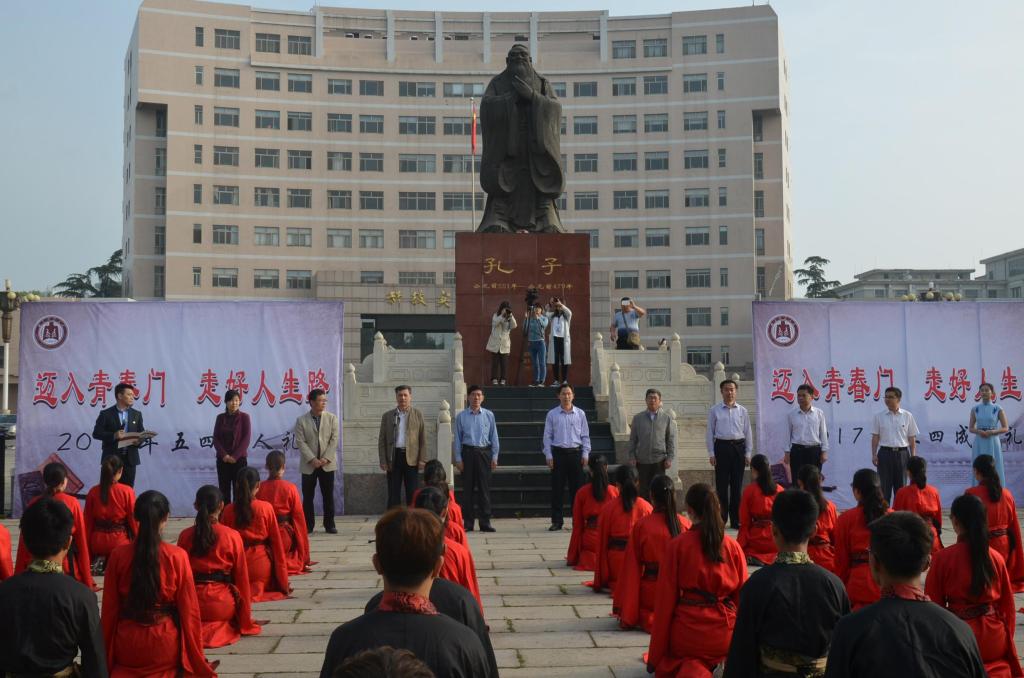 5月4日,五四青年节之际,快猫视频 第十届“孔子文化月”系列活动之大学生成人礼在孔子文化广场举行。党委常委、副校长辛杰、宣传部部长宋德昭、学生工作处处长杨永明、保卫处处长左兴才、工会主席王万民、快猫视频 党委书记尹明法、党委副书记王慕东等领导出席了活动,各学院辅导员及广大青年学生共同参加了活动,活动由黄江滔主持。