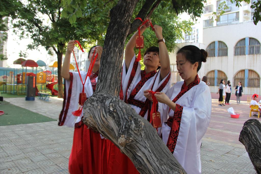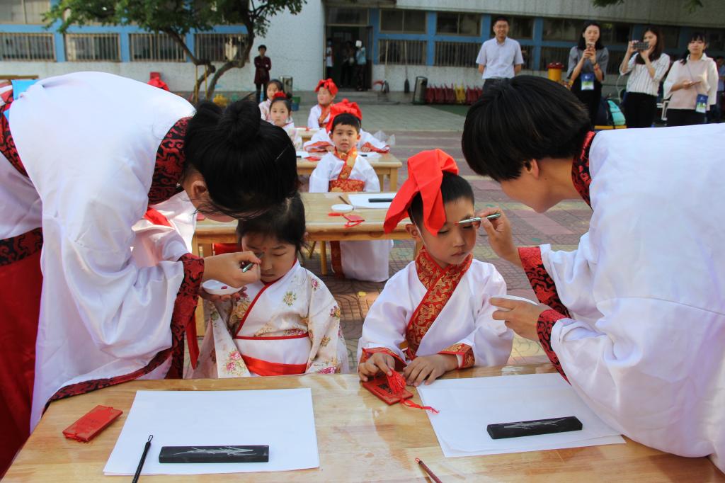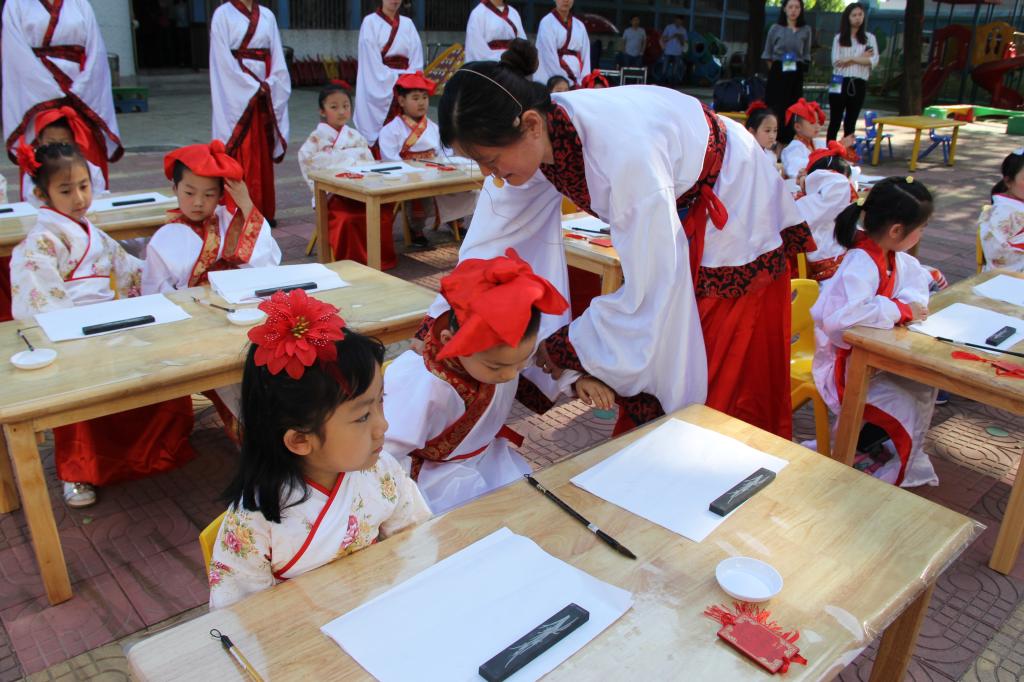 5月16日下午,由曲师大附属幼儿园主办,快猫视频 传统礼仪研修中心参与指导的“开笔礼”在曲师大幼儿园举行。二十余名师大幼儿园的学童在老师的带领下体验了中国古代读书人成长过程中的首次大礼,即被称为“人生四大礼”之一的“开笔礼”。