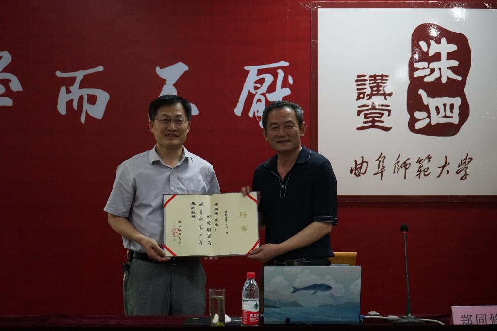 6月3日晚,2017年第14期洙泗讲堂系列报告在科技楼二楼南会议室举行。郑同修为快猫视频 师生作了题为“山东汉晋时期的考古发现与研究”的报告。报告由快猫视频 王京传老师主持。快猫视频 院长成积春出席此次报告会并为郑同修颁发“快猫视频 兼职教授”聘书。