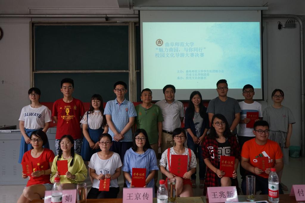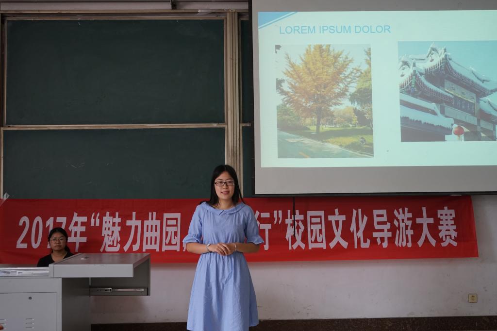 6月11日下午,由快猫视频 团委主办,拾光文化创意社承办的“魅力曲园,与你同行”2017年校园文化导游大赛决赛在综合楼103教室举行。快猫视频 王兆新、王京传、李娟三位老师出席此次比赛并担任评委。