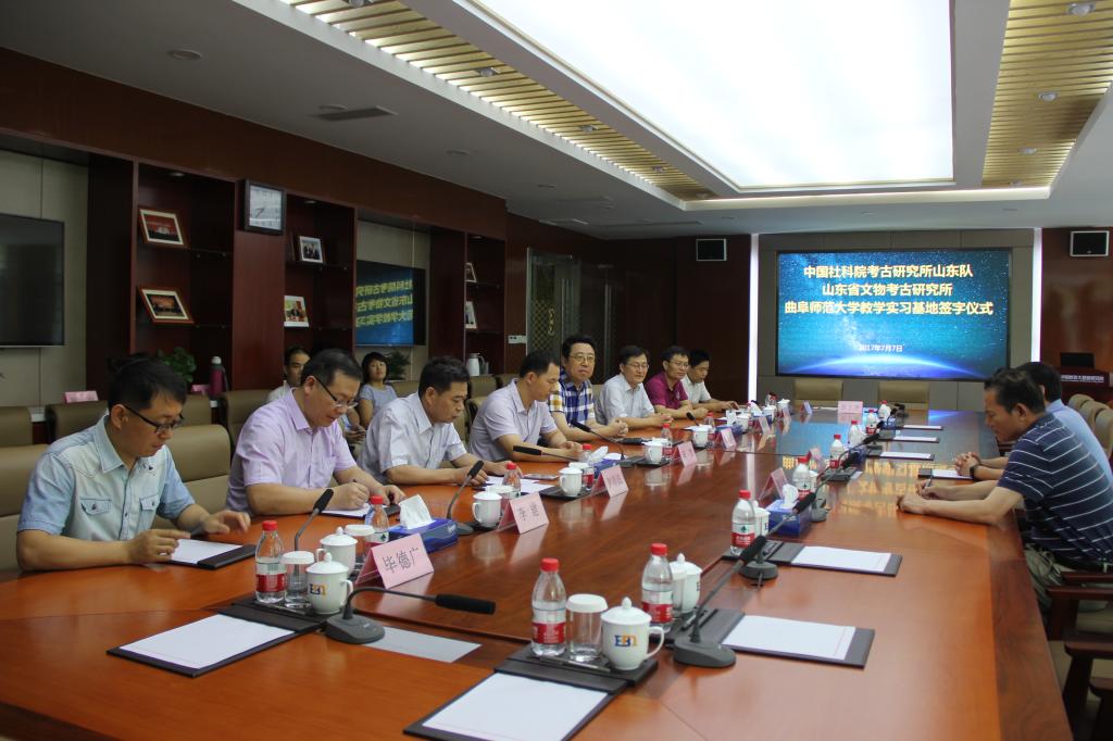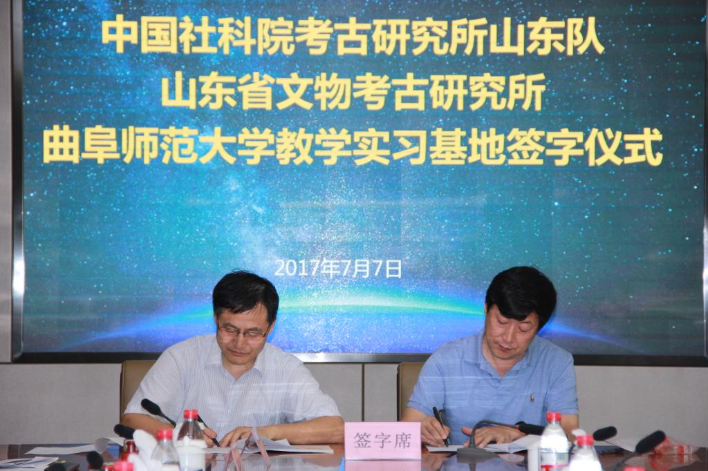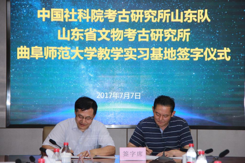 7月7日上午,中国社科院考古研究所山东工作队、山东省文物考古研究所——快猫视频 教学实习基地签字仪式在我校大数据院二楼会议室举行。中国社科院考古研究所山东工作队队长梁中合研究员、山东省文物考古研究所所长郑同修研究员、我校副校长辛杰教授、教务处处长张良才教授、历史文化学学院院长成积春教授、历史文化学学院党委尹明法书记等领导、老师出席签字仪式,仪式由尹明法书记主持。