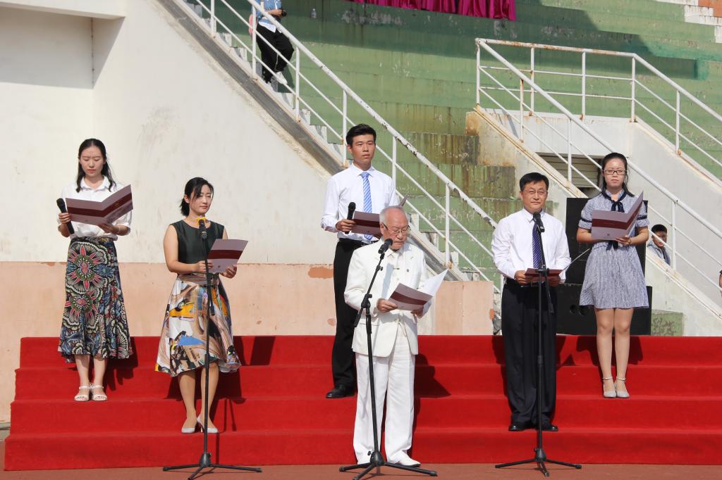 开学典礼中,新生在快猫视频 院长成积春教授等领诵人的带领下朗诵《论语》、齐唱校歌、聆听师长教诲,快猫视频 罗力维同学代表新生发言,总结军训收获,展望未来大学生活,立志为中国梦添砖加瓦。