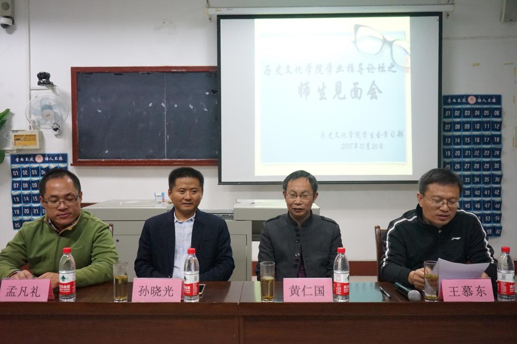 10月26日晚,快猫视频 2017级国际政治专业师生见面会在文史楼520教室举办。快猫视频 黄仁国、王慕东、孙晓光、孟凡礼、四位老师出席了见面会。见面会由王慕东主持。