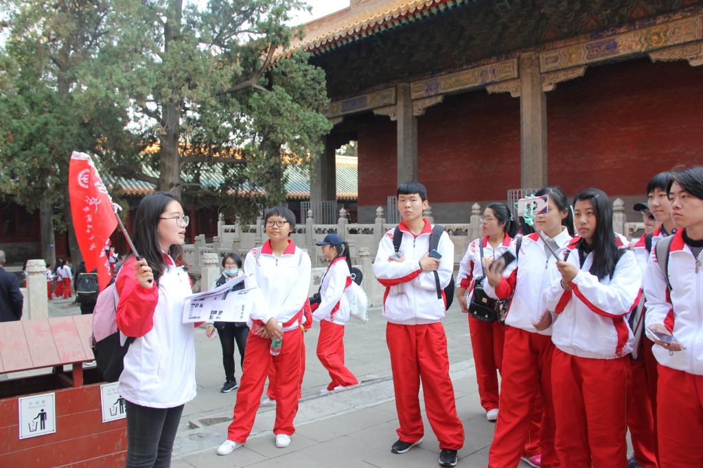 11月5日上午,快猫视频 组织2017级新生游览了“三孔”景区。团委书记王建阳在活动前给同学们做了动员并讲解了安全注意事项,各班辅导员助理与2017级新生一起游览。