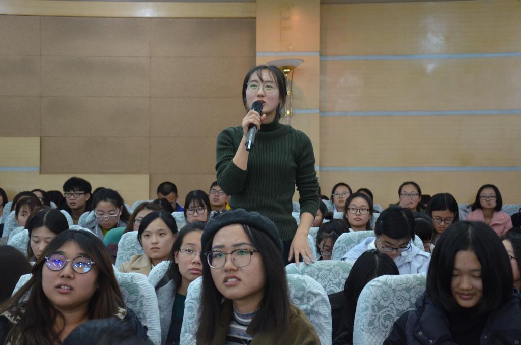 报告现场场面火爆,会堂内座无虚席,众多老师同学积极参与。楼建军根据自身研究的经验向大家讲述了说课的定义与内容、功能与作用以及分类与特点。然后通过列举多个具体事例深入地向大家介绍了说课时如教课重难点等几个注意事项。最后,楼建军耐心的解答了在场同学的提问。