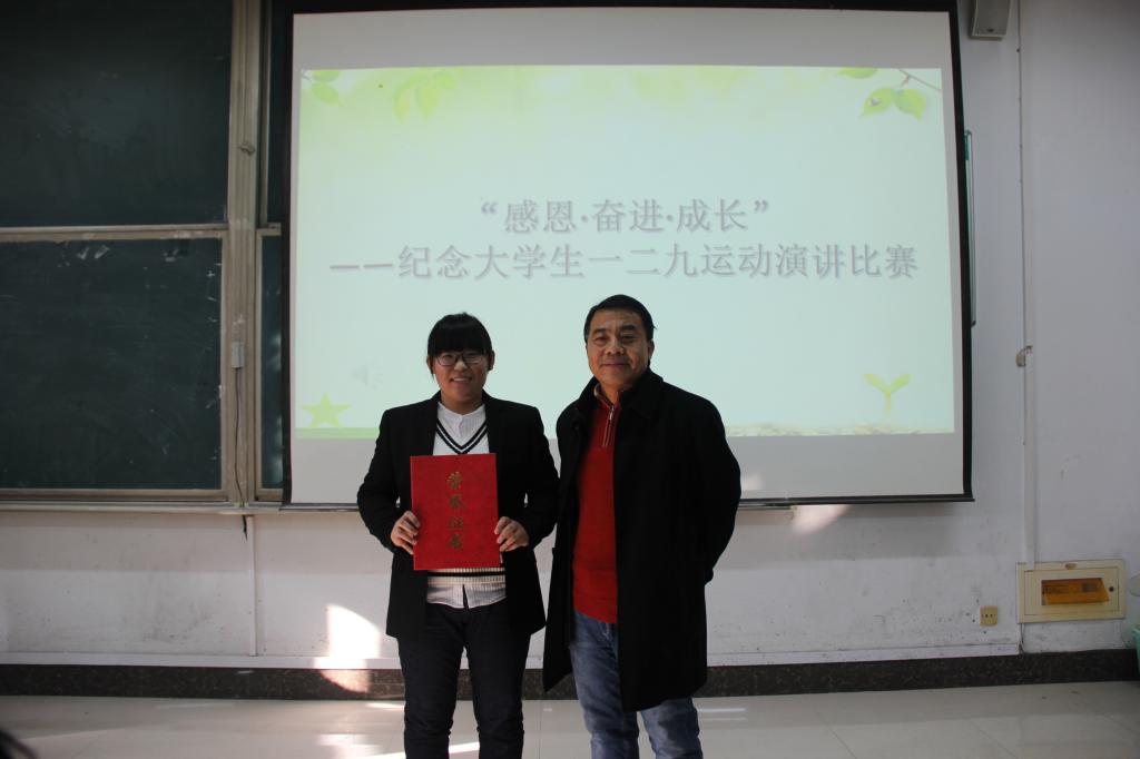 12月9日上午,快猫视频 在综合楼105教室举办了“感恩·奋进·成长”暨大学生一二九运动演讲比赛。快猫视频 王兆新、刘伟、张俊成、韩琳琳4位老师受邀担任比赛评委。