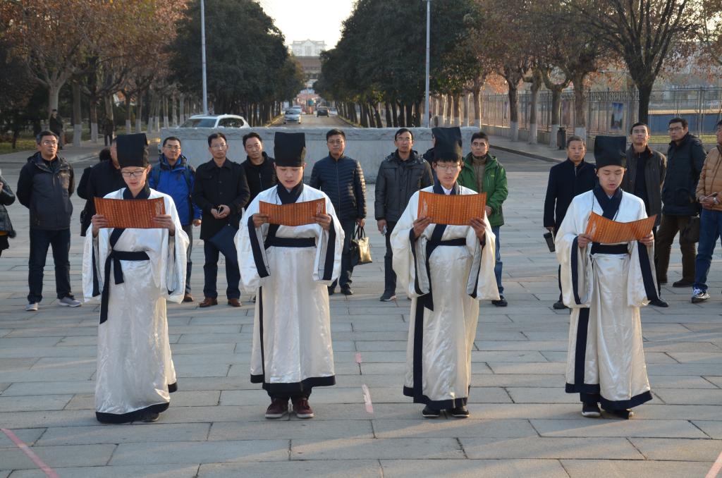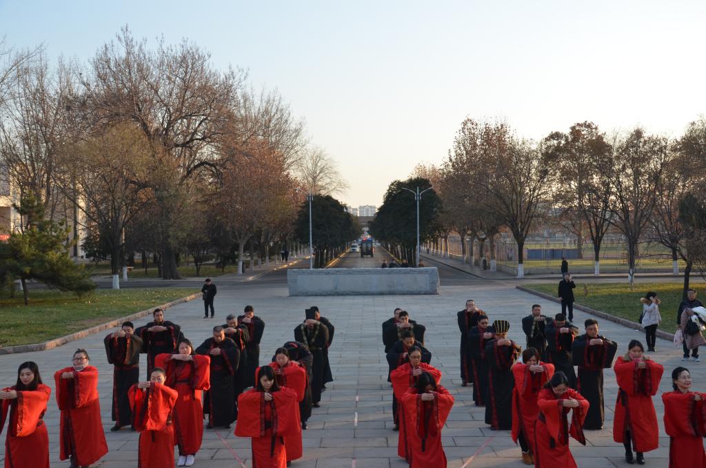 12月8日下午,快猫视频 传统礼仪队在孔子文化广场为连云港教育总工会主席考察团进行传统礼仪展演。
