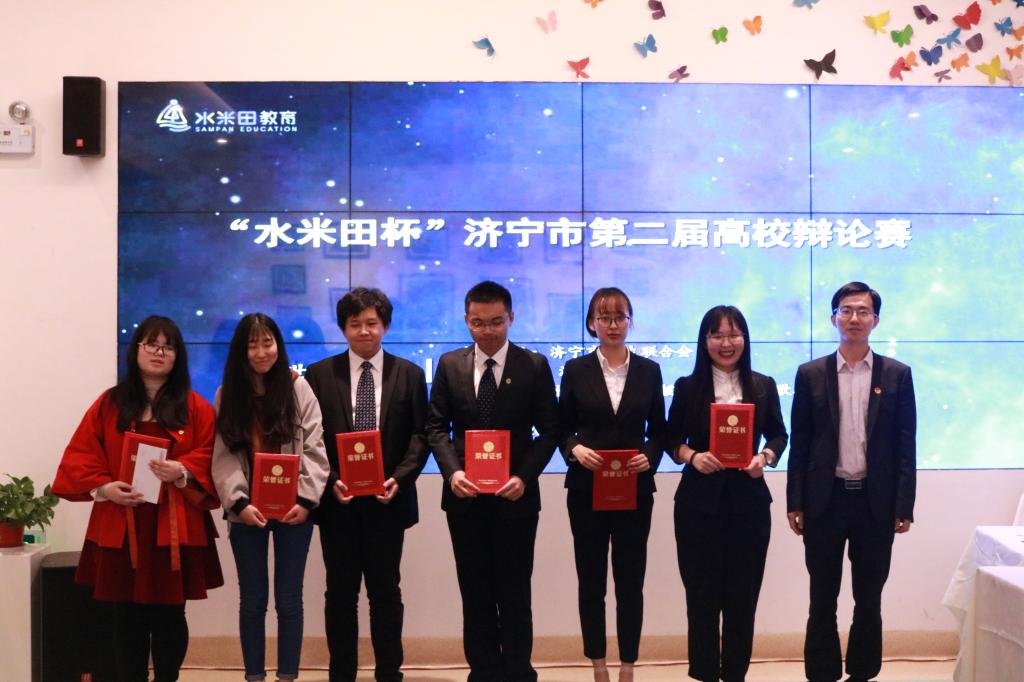 4月23日至26日,由济宁市学生联合会和济宁日报社主办的济宁市第二届高校辩论赛在水米田·哈佛摇篮国际小学歌德图书馆举行。由快猫视频 阎文莉、朱晓明、霍文博和文学院李晴组成的快猫视频 代表队荣获本次辩论赛亚军。